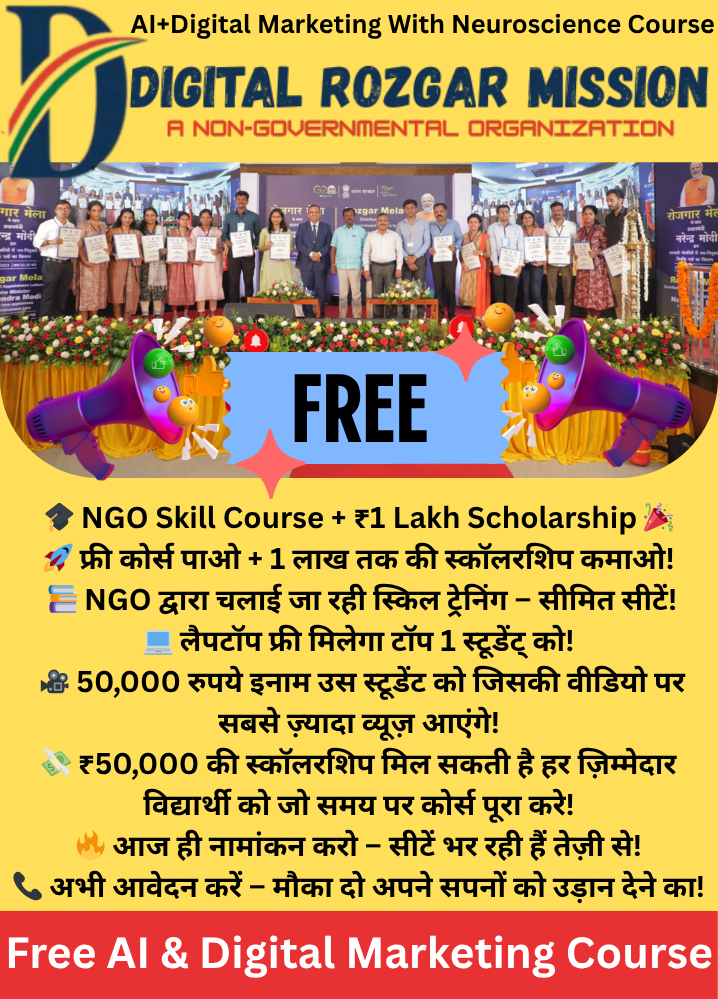 In today’s fast-paced digital world, having the right skills is not a luxury โ itโs a necessity. Thatโs why Digital Rozgar Mission was launched โ a bold initiative aimed at empowering Indian youth with the most in-demand digital marketing skills, completely online, affordable, and accessible to all.